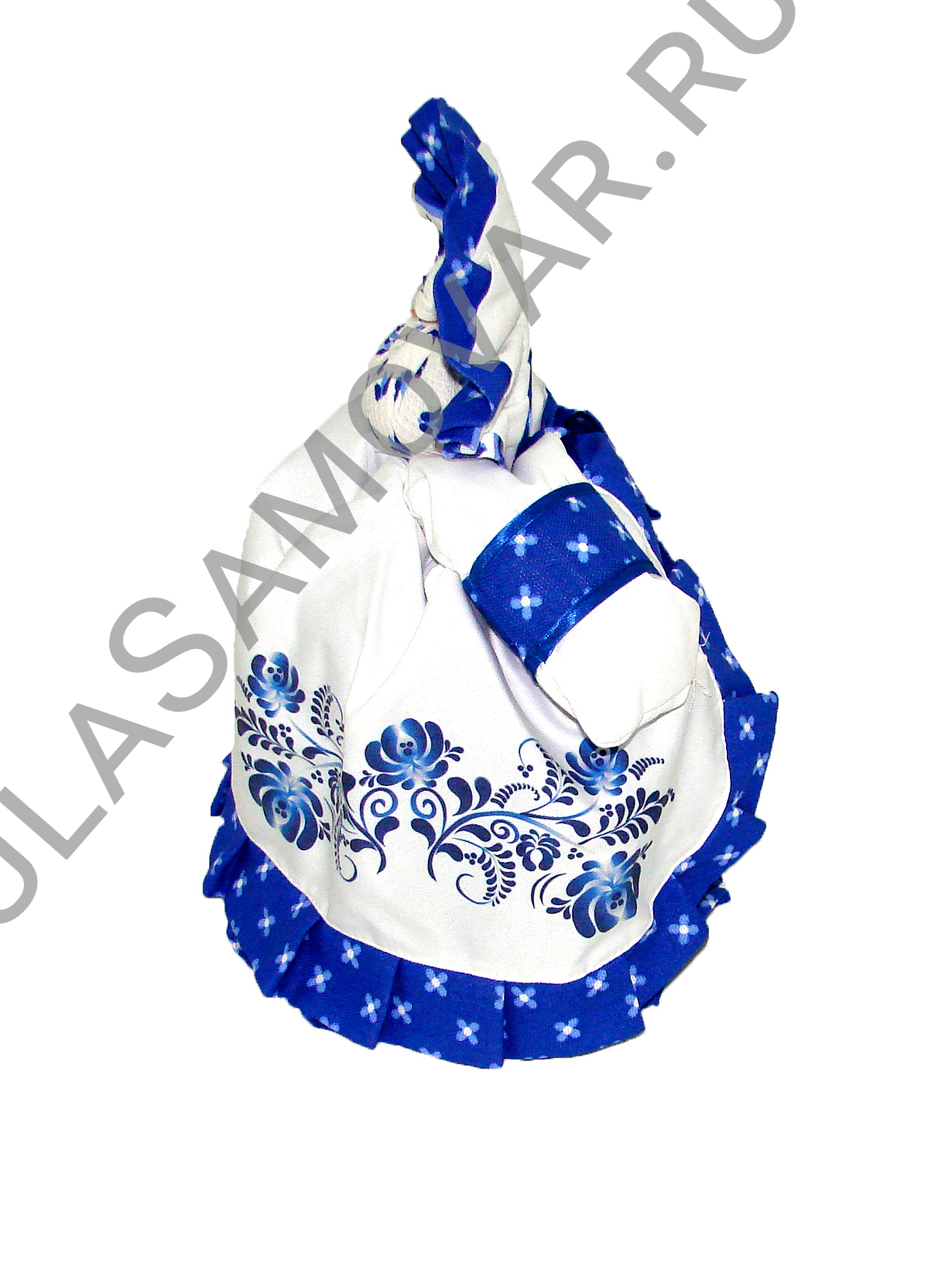 Грелка на чайник "Дымковская игрушка" синяя с белыми рукавами
