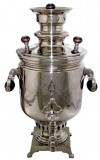 Самовар антикварный никелированный с медалями, объемом 8.5 л жаровой, угольный, традиционной формы банка в наборе с трубой