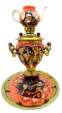 Самовар 3 л (желудь) электрический "Под жостово на синем" в наборе (4 пр.)