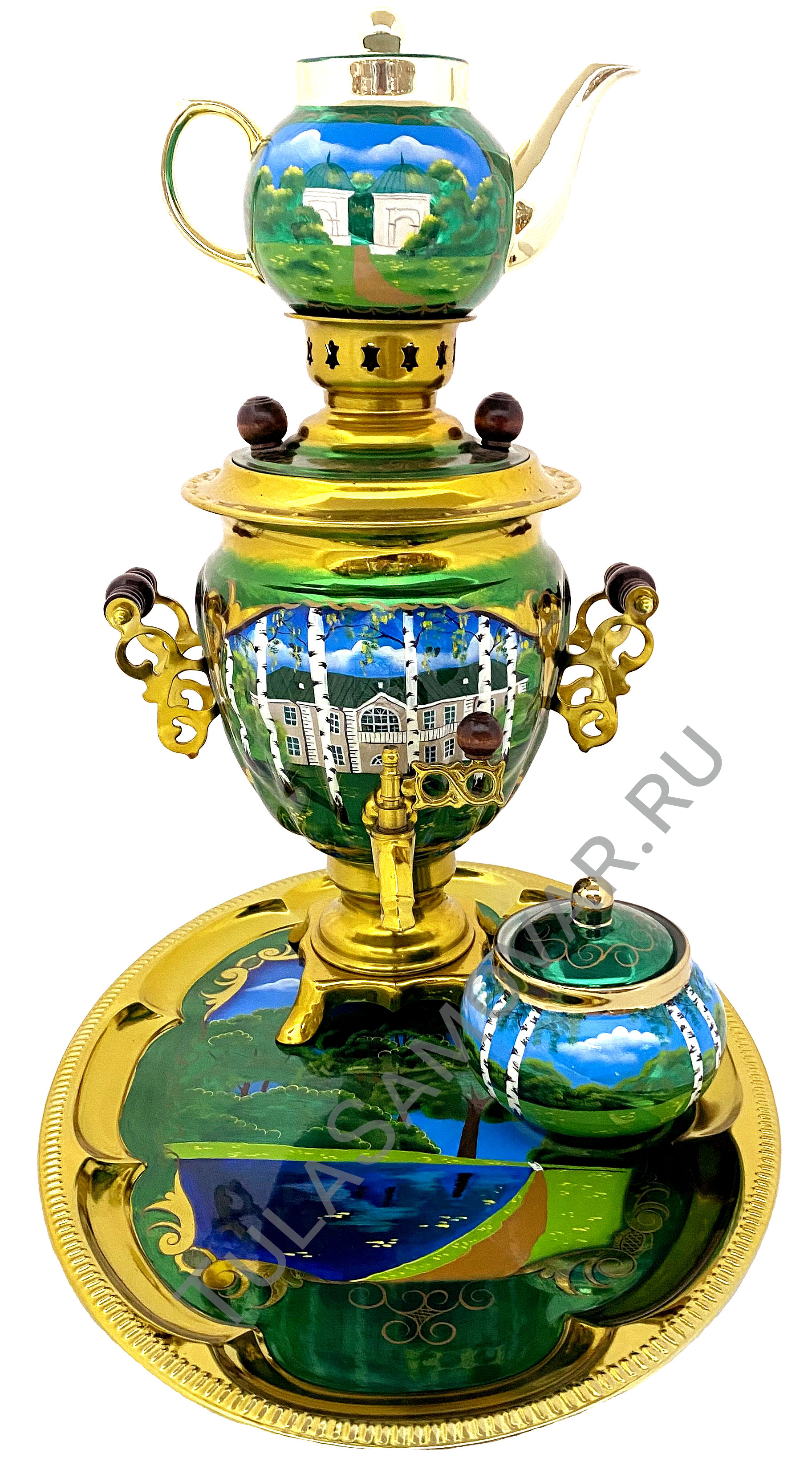 Подробное описание товара:Самовар формы желудь с художественной росписью "Ясная поляна"