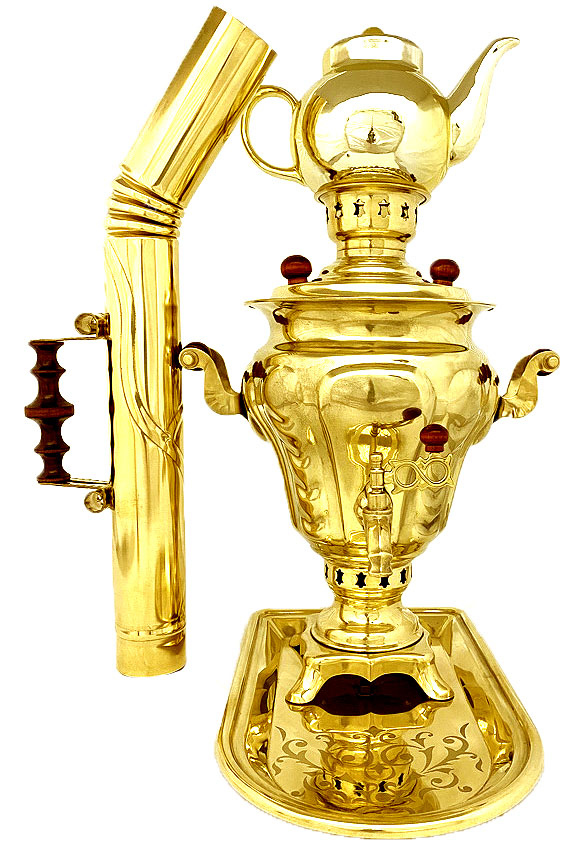 Самовар 3 л жаровый, на дровах, формы "Груша" с чайником и трубой на подносе