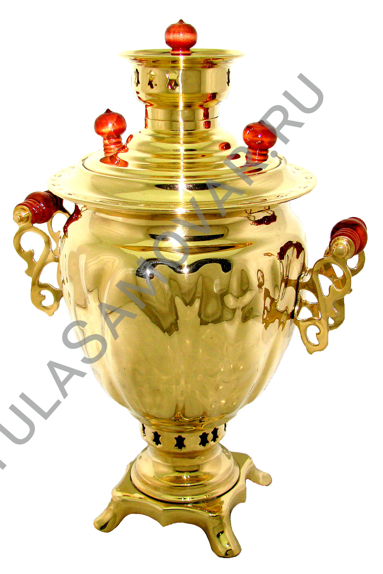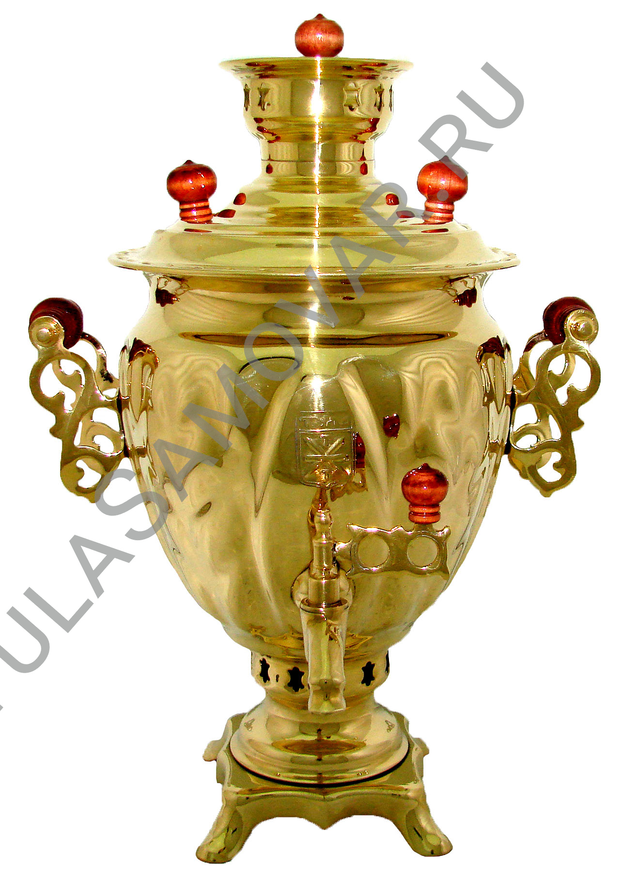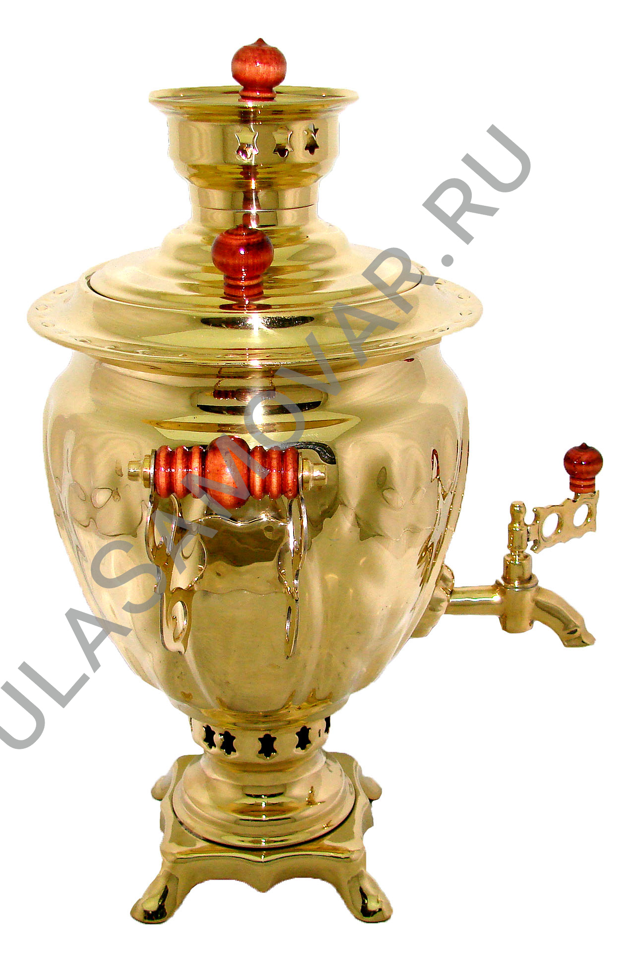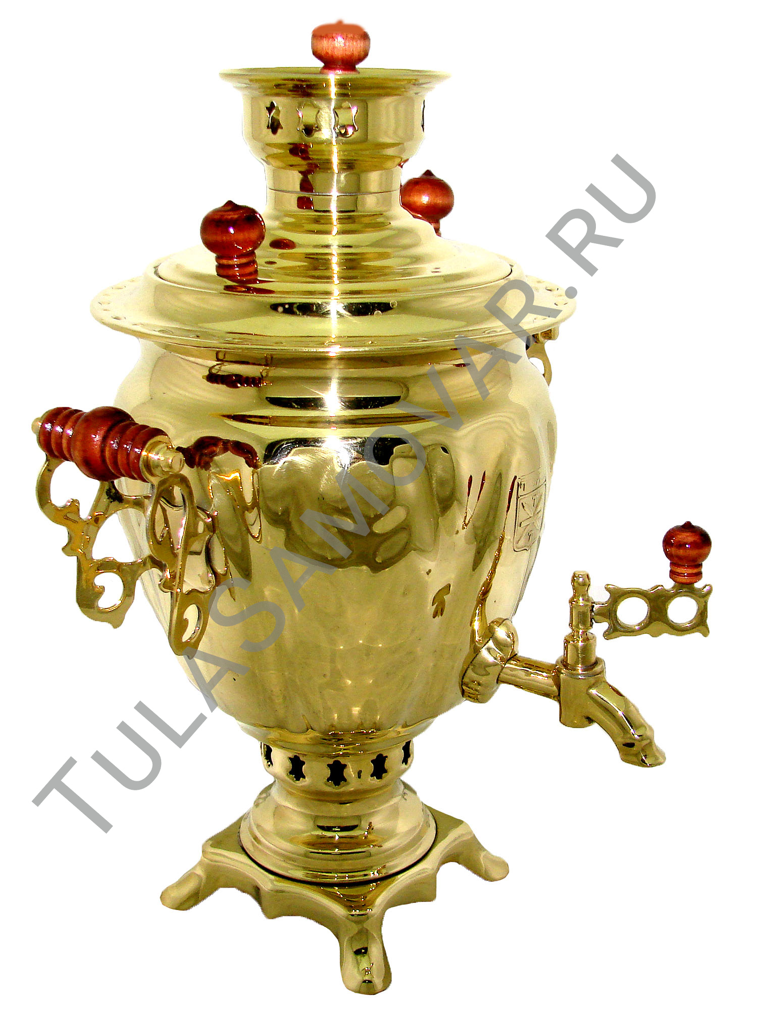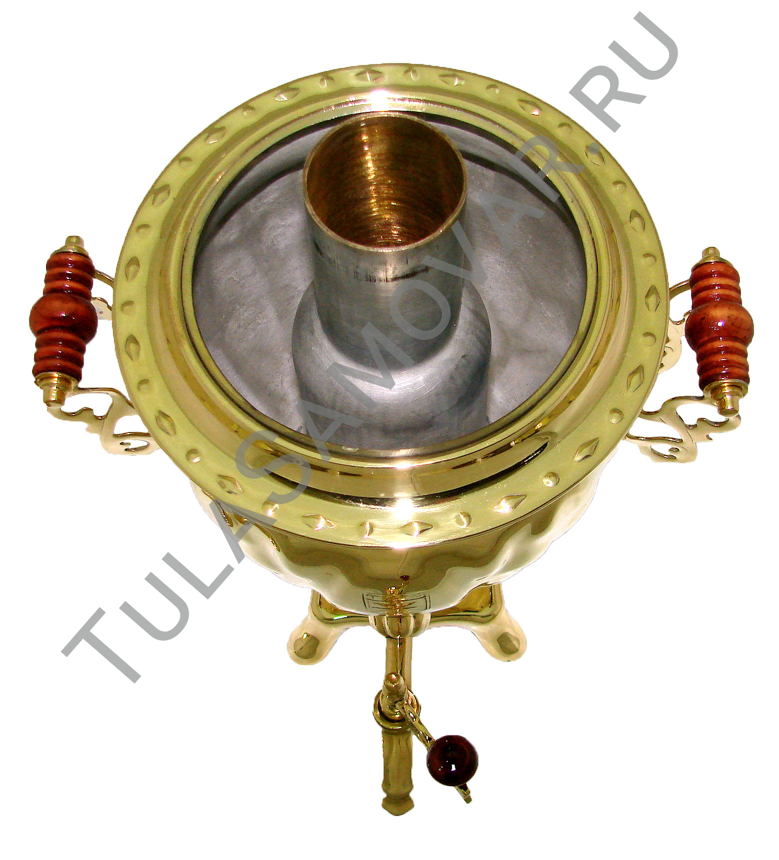 Самовар жаровый, на дровах, объемом 3 л формы желудь, латунь