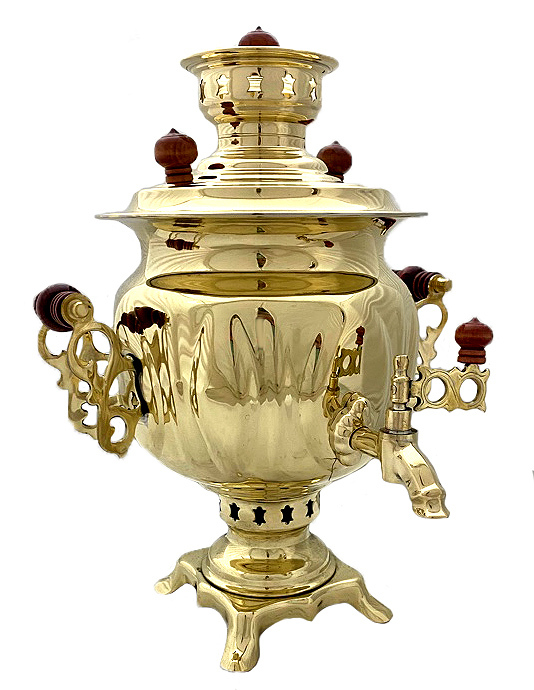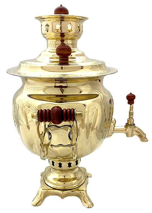 Самовар жаровый, на дровах, объемом 3 л формы овал, латунь