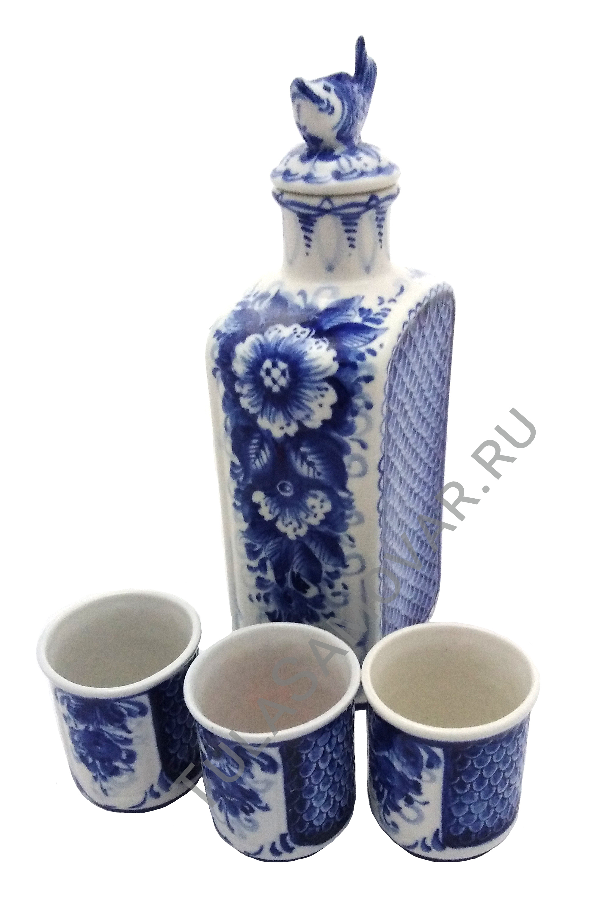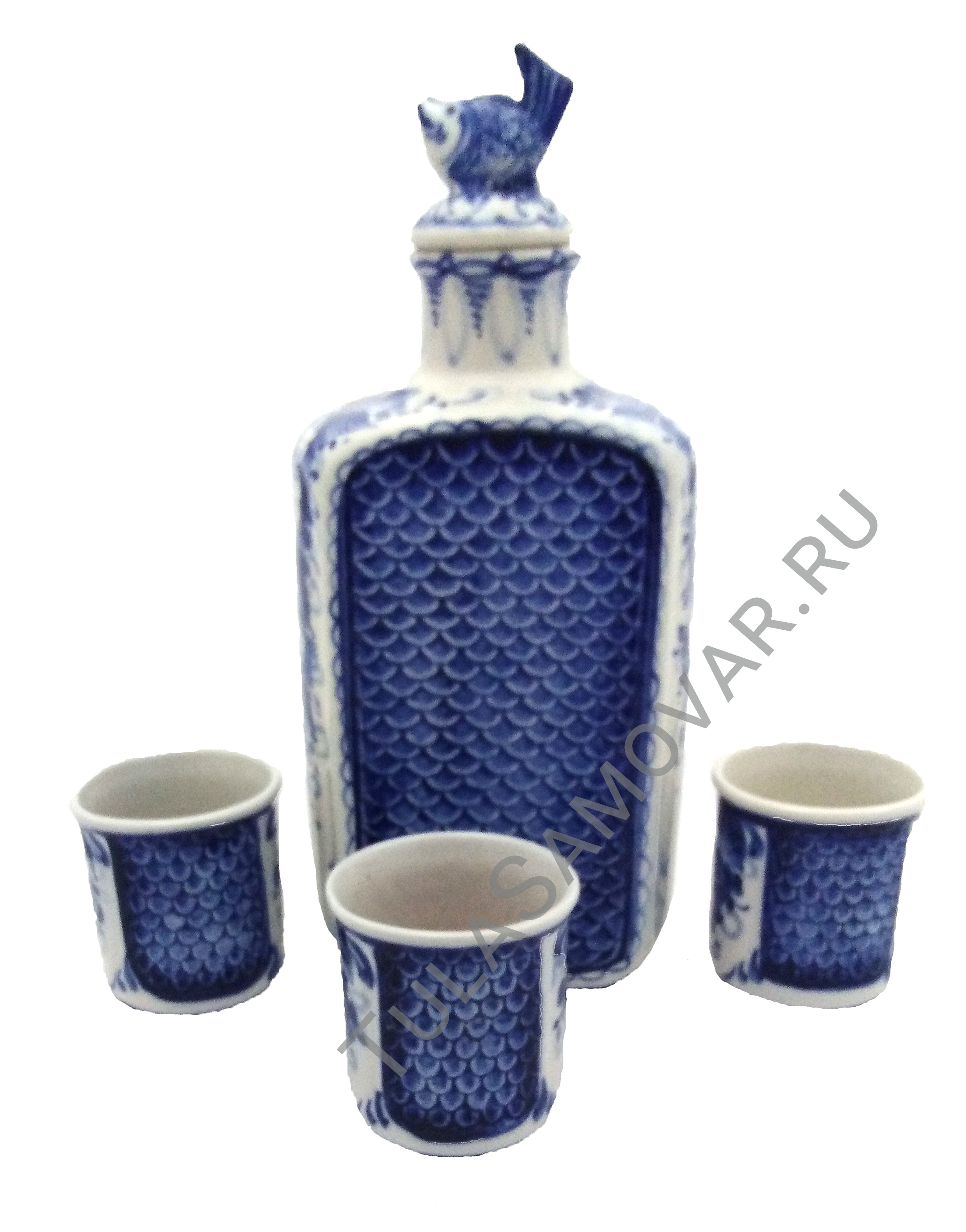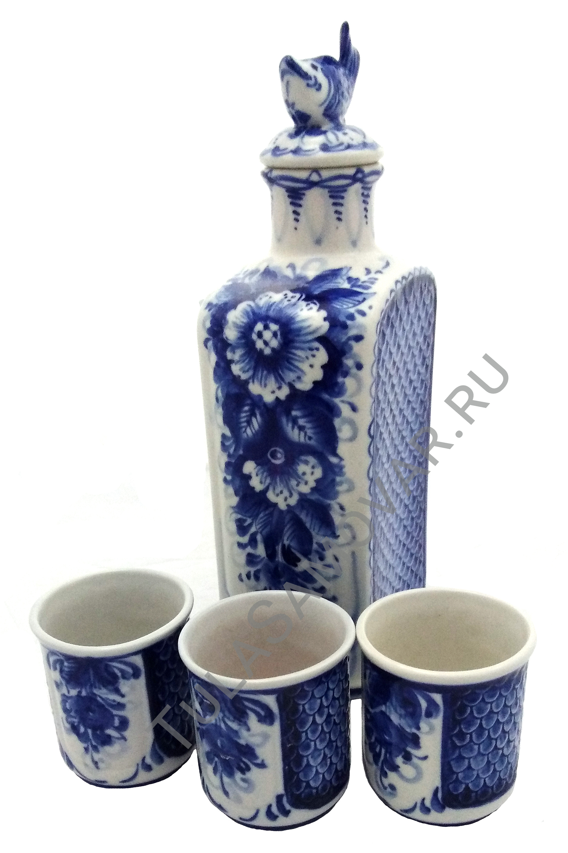 Гжель. Штоф "Рыбка" с 3- мя стопками