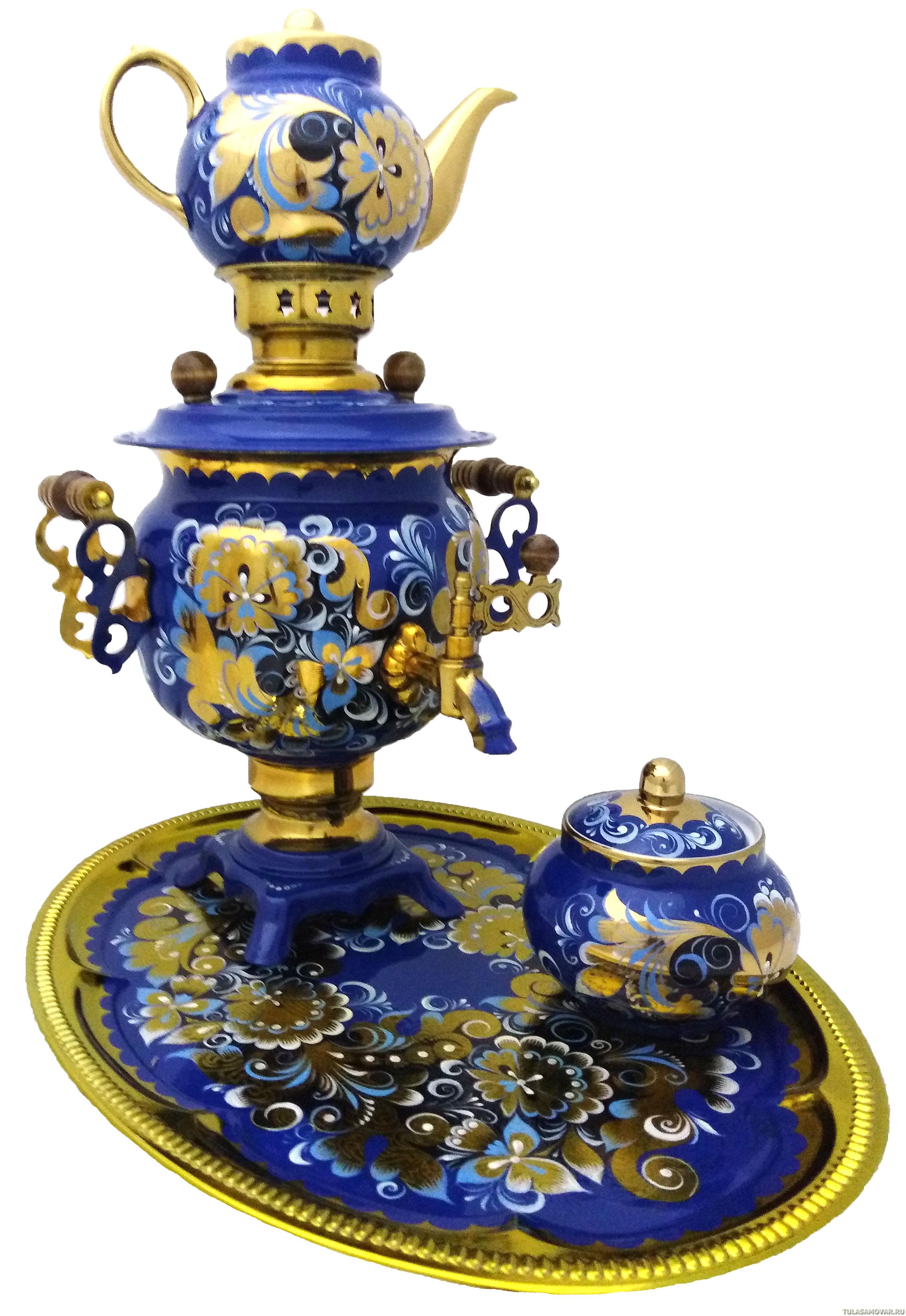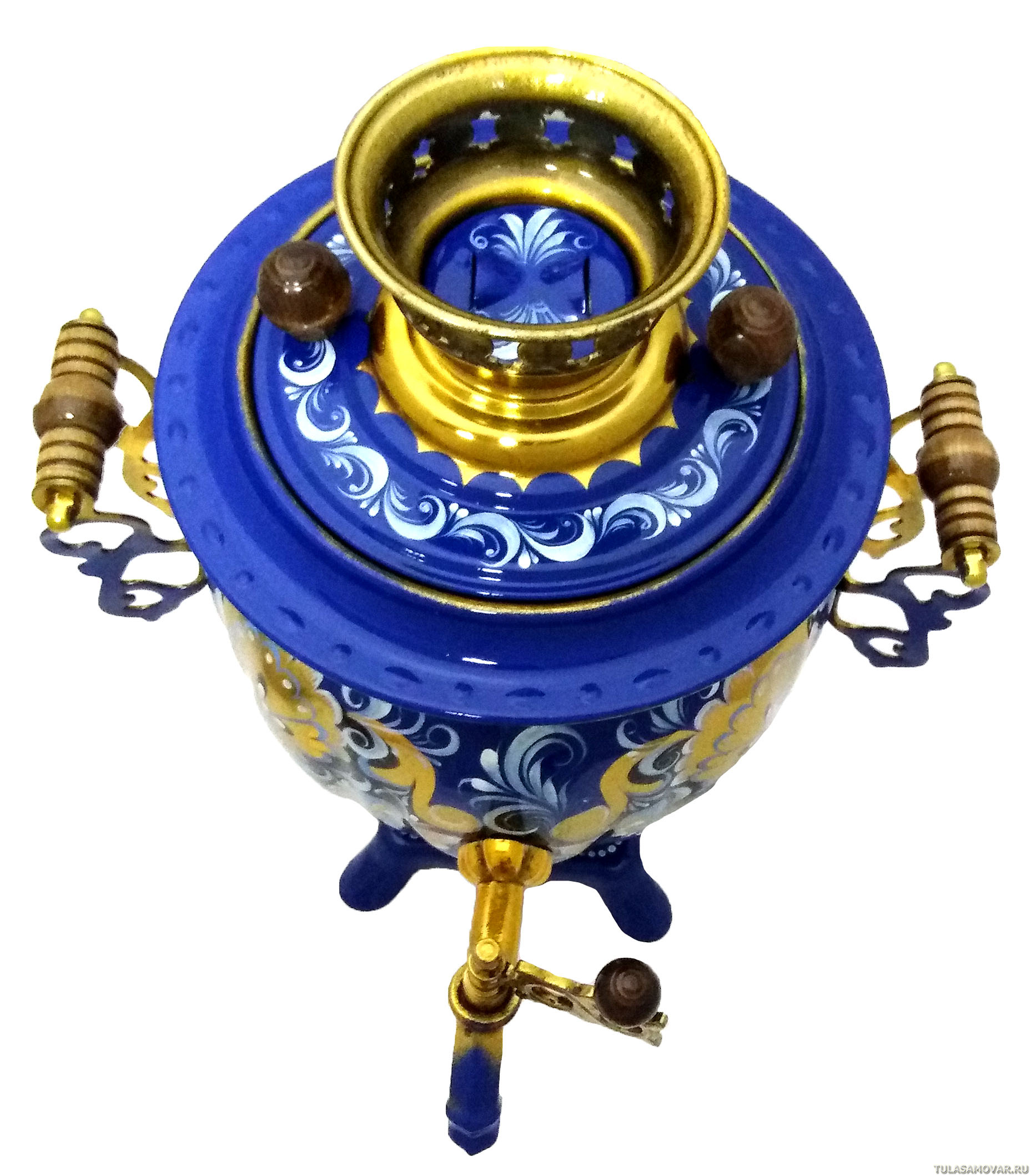 Подробное описание товара:Самовар с художественной росписью "Кудрина на голубом"