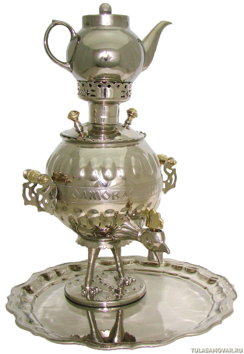 Самовар электрический 3 л "Петух" никелированный в наборе, со свистком