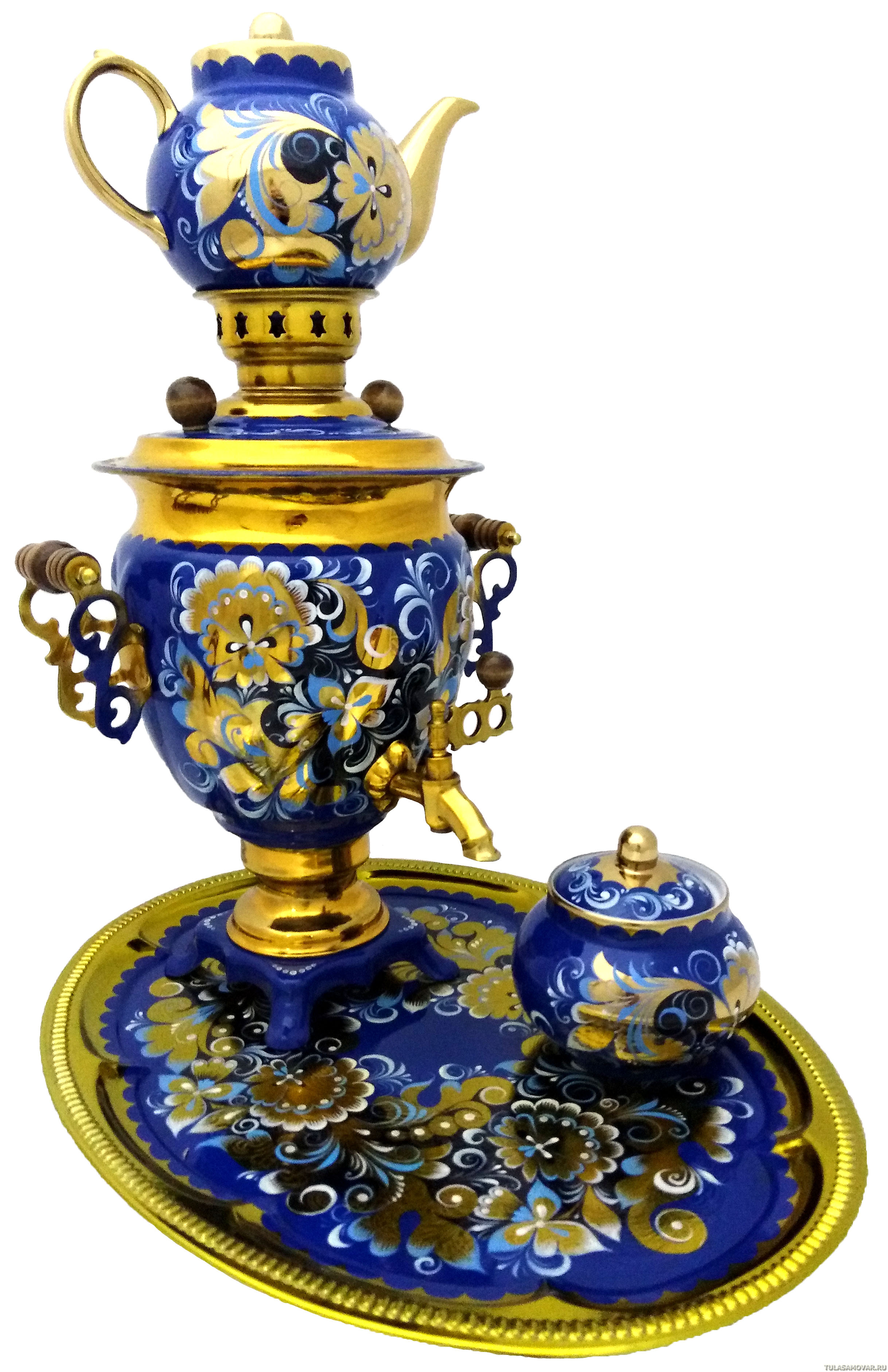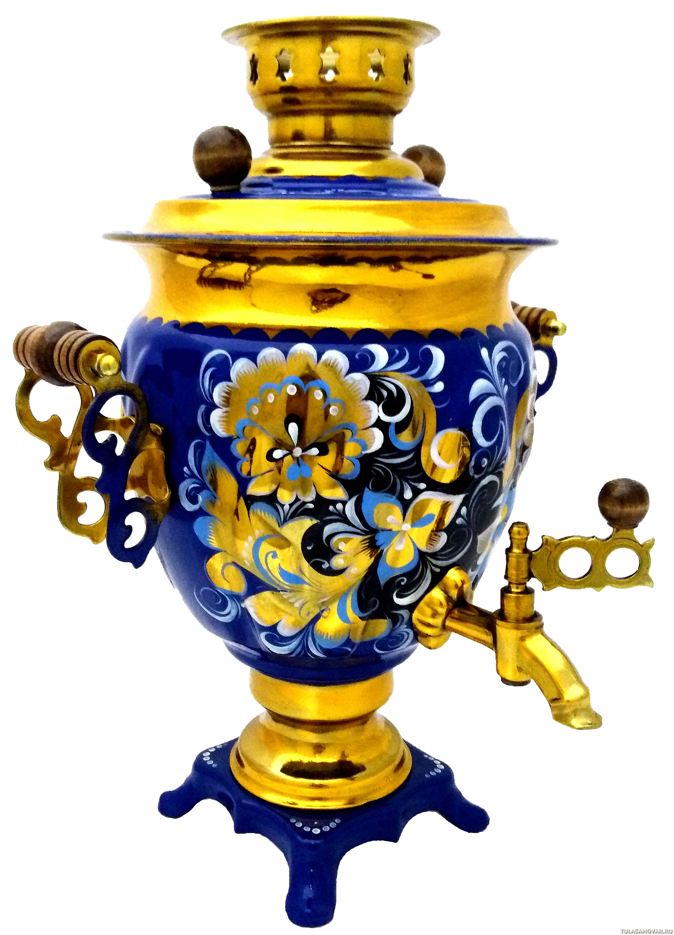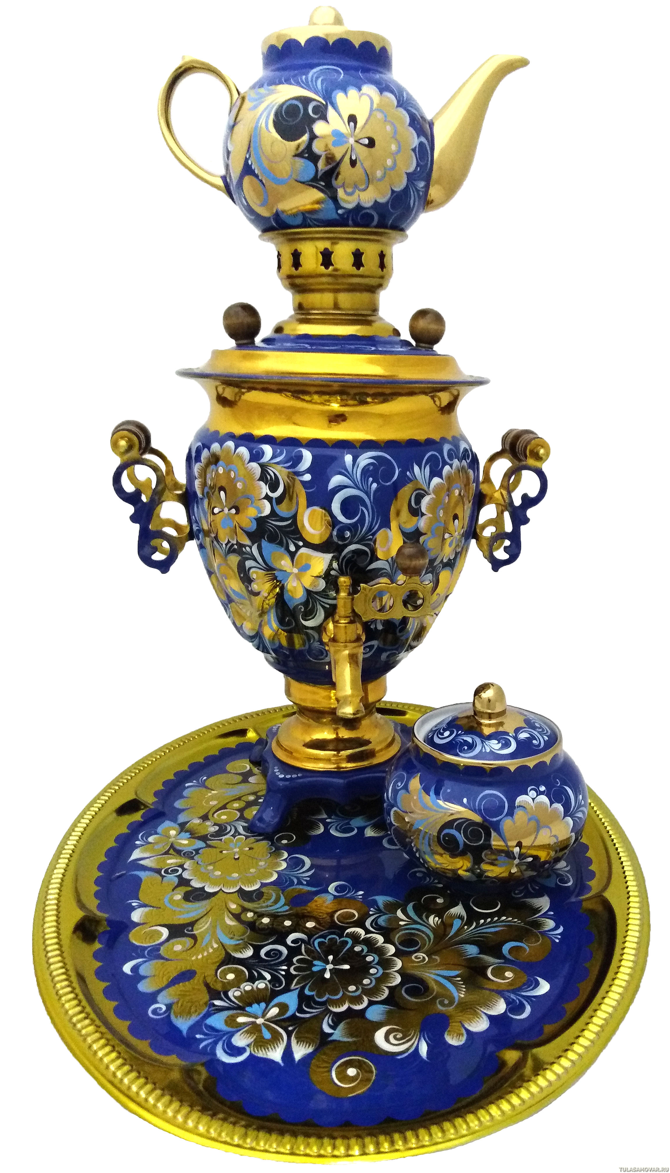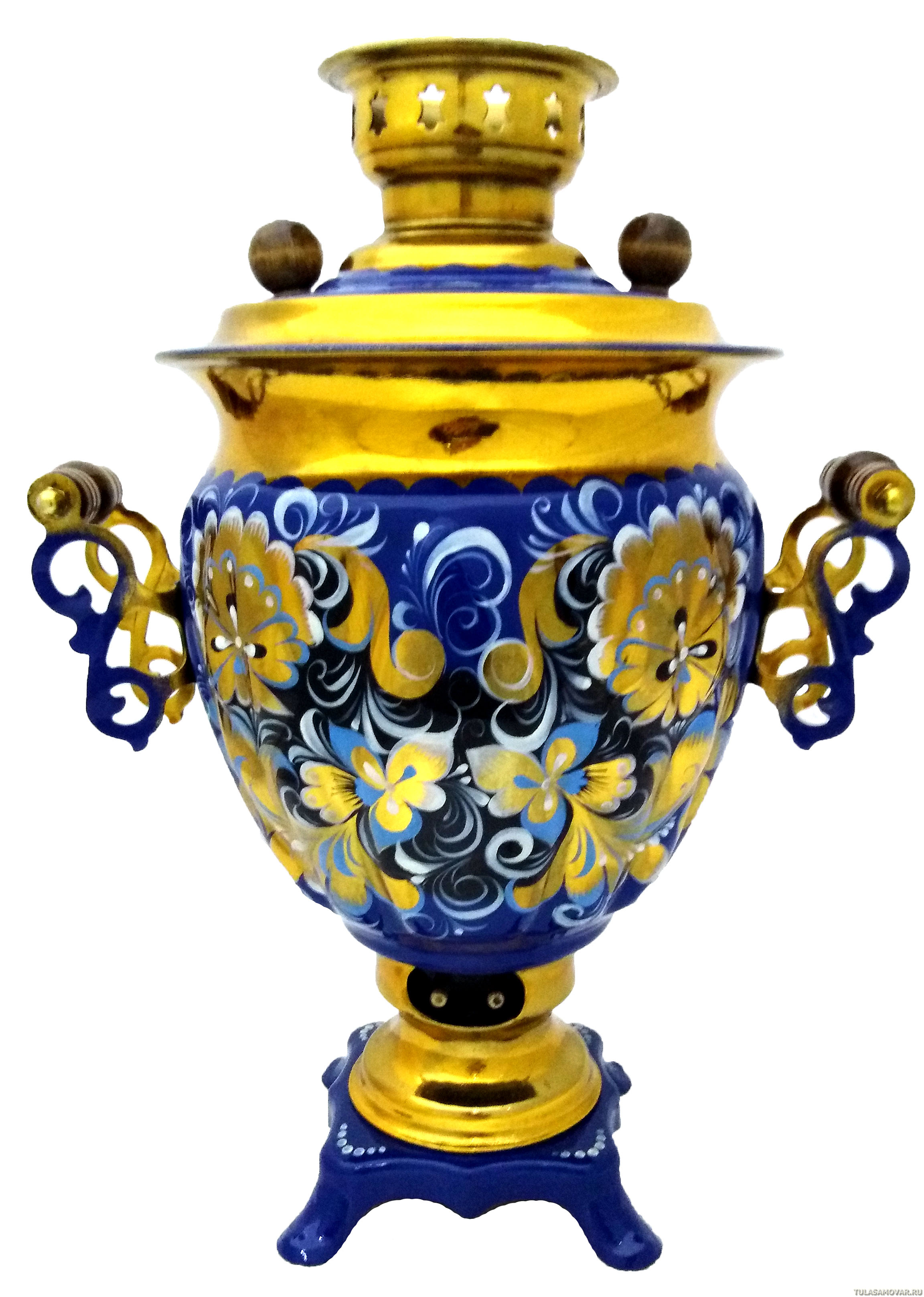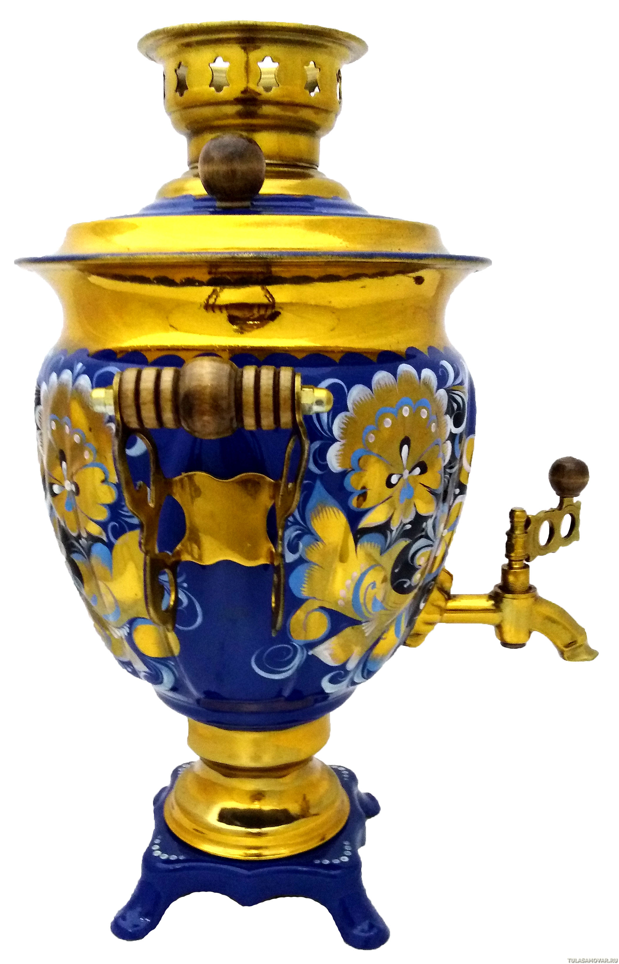 Подробное описание товара:Самовар формы желудь с художественной росписью "Кудрина на голубом"